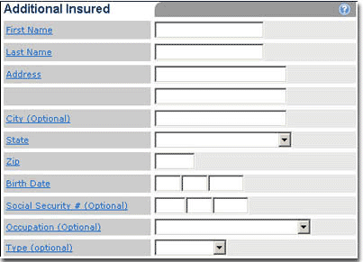 The Additional Insured form provides a place for you to enter information about any other parties who have a financial interest in the unit(s).