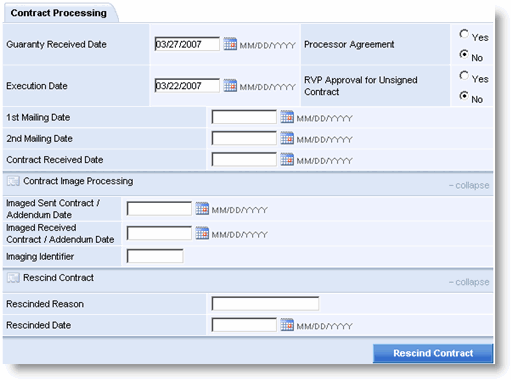 Contract Processing fields include: