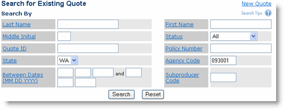 modernLINK® offers several convenient search options that allow you to retrieve a previously entered quote. Saved quotes that have not been processed as policies or declined are visible in the system indefinitely.